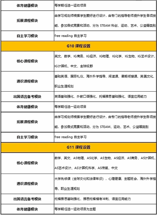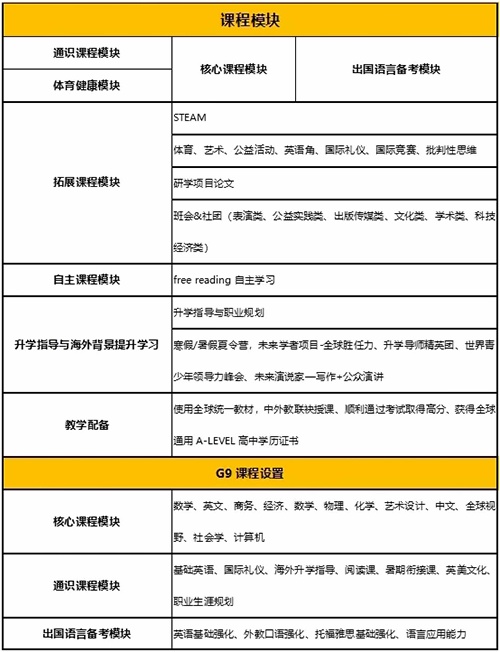 4)三年学制为一年IG课程及两年A-LEVEL课程,四年学制为两年GCSE课程及两年A-LEVEL课程;