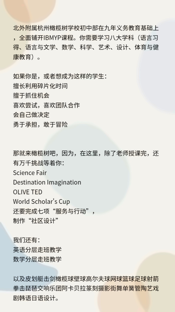 北京外国语大学附属杭州橄榄树学校67 人已关注