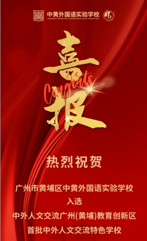 热烈祝贺中黄外国语实验学校入选中外人文交流广州(黄埔)教育创新区首批中外人文交流特色学校!