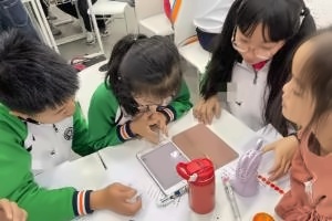 在“我是环境科学家”探究环节,孩子们通过抽取环境因素卡片,运用电子设备查找资料,讨论环境因素对日常学习和生活的影响。