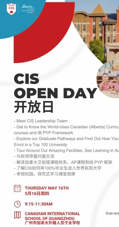 全方位了解校园风采,零距离感受师生风貌,沉浸式体验CIS生活。5月16日,CIS诚挚邀请您前来参加“校园开放日”!