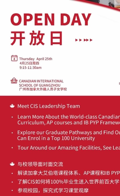 如此优异的成绩,CIS是怎么做到的?如何才能达到CIS的入学门槛?别再到处打听了!想要了解CIS,就来参加4月25日的CIS开放日活动吧!