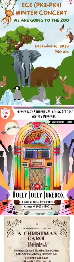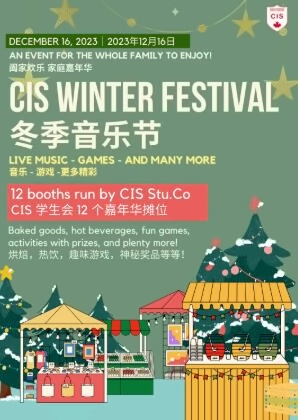 12月16日周六,一年一度的CIS冬季音乐节即将来临!圣诞老人已整装待发,你准备好探索乐声与欢乐的一天了吗?活动面向公众开放,带上家人一起来吧!