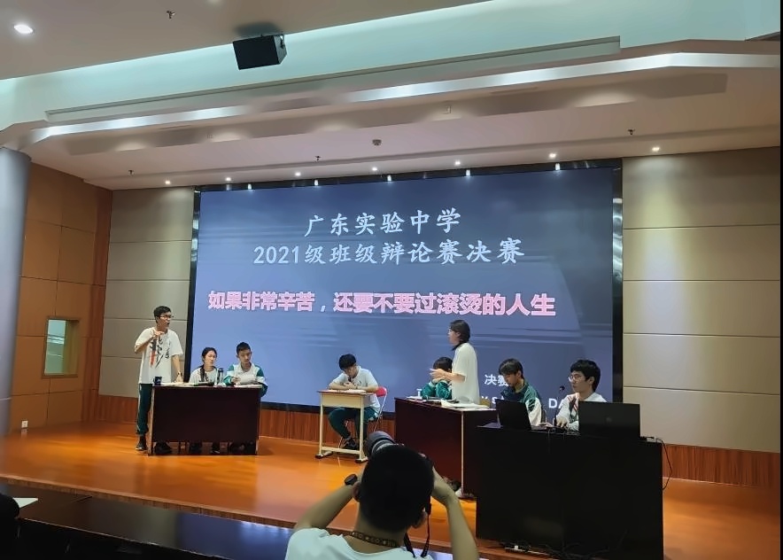 在广东实验中学2021级班级辩论赛的决赛舞台上,DAP3班(省实国际部AP高一新哲3班)与省实南山3班正进行着一场激烈的唇舌较量,本场辩论赛的主题正是“如果非常辛苦,还要不要过滚烫的人生?”。
