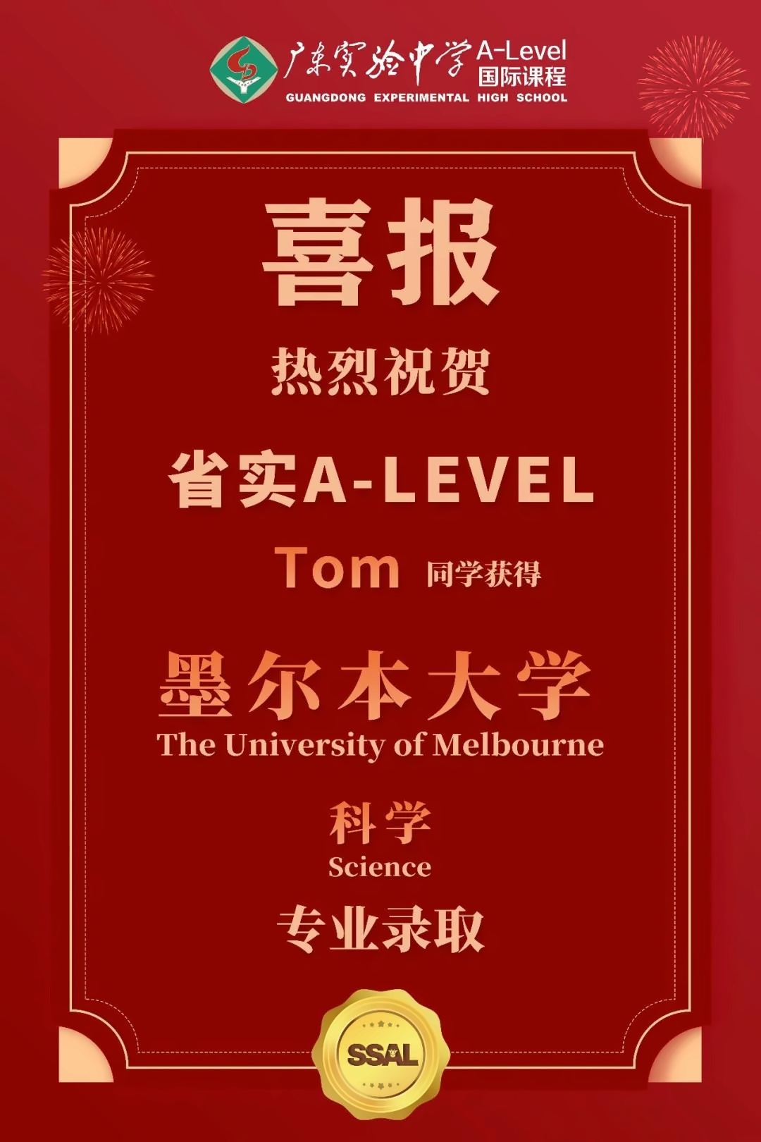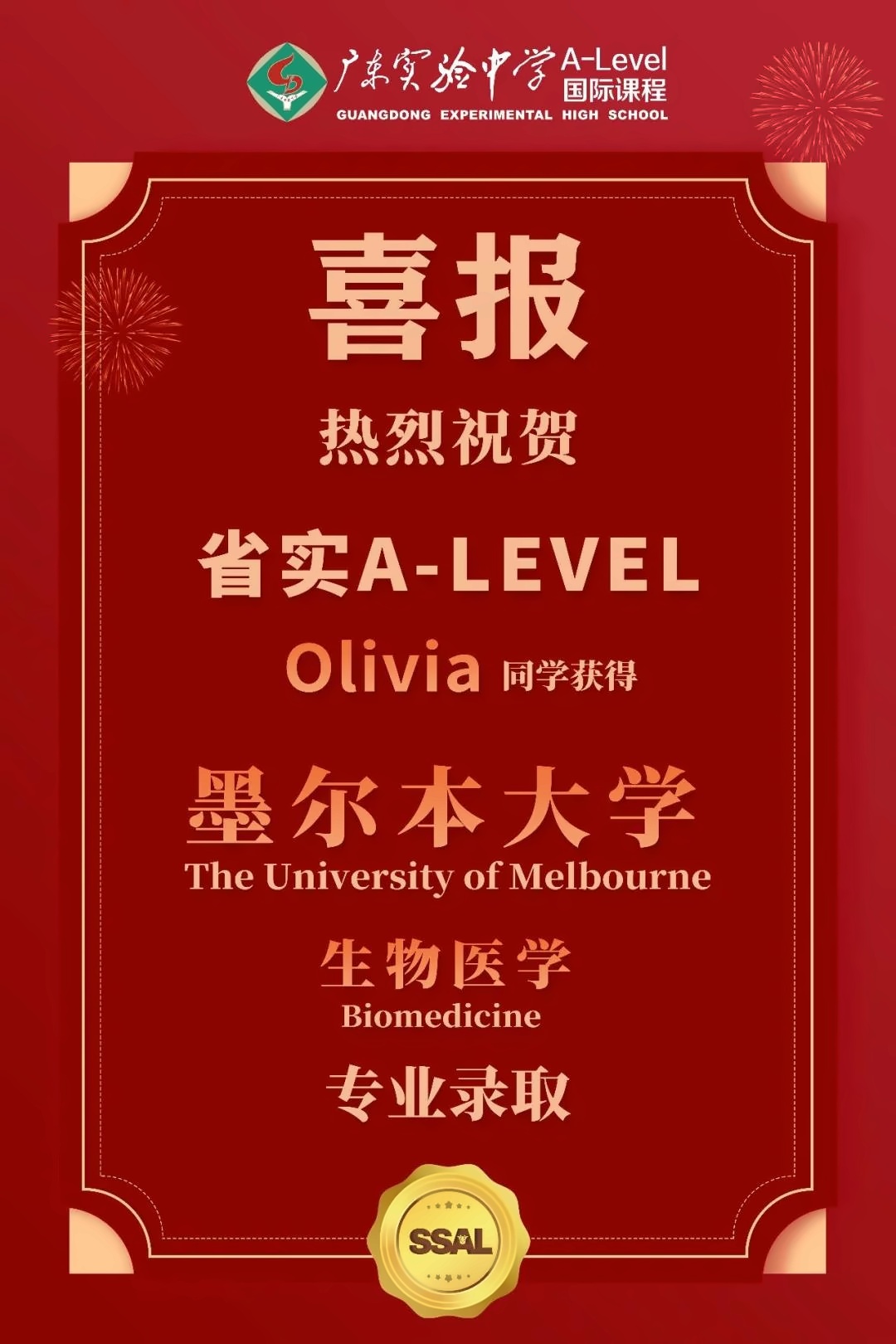 向省实国际部A-LEVEL课程优秀学子发来录取offer!