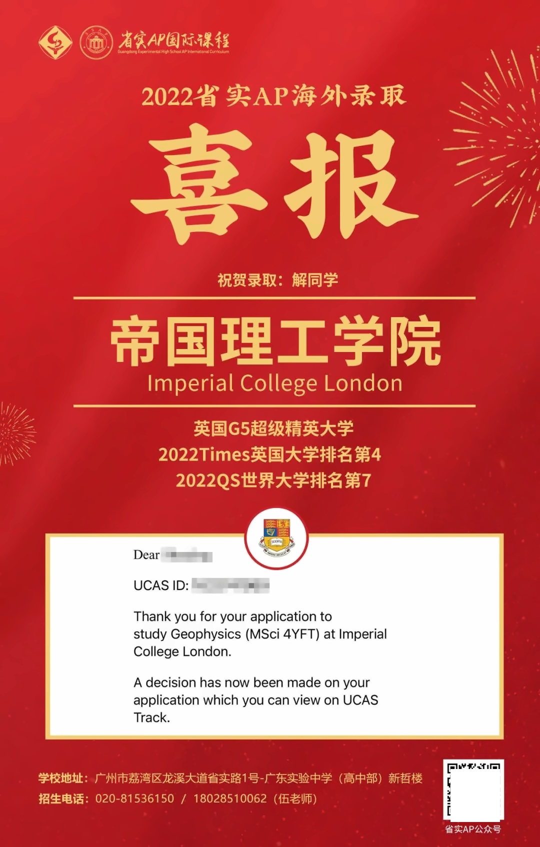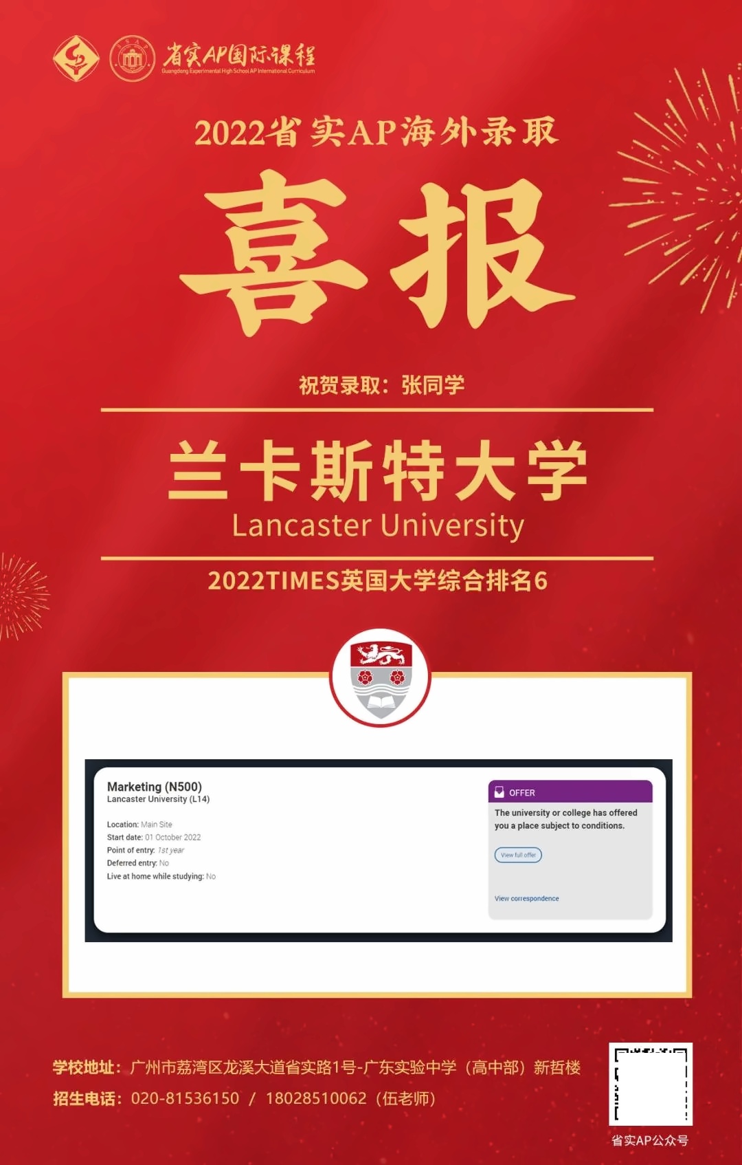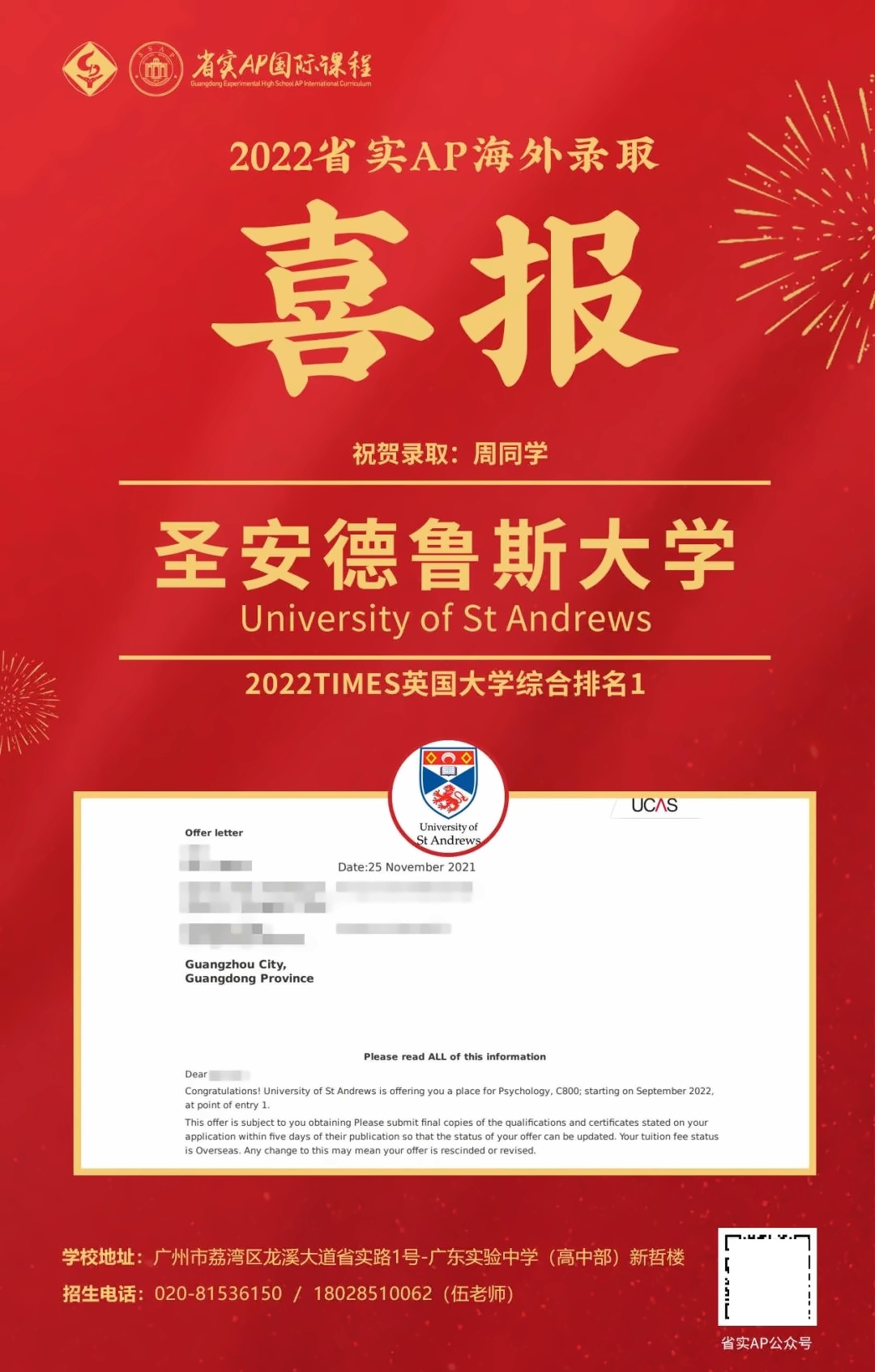 海外大学早申录取陆续放榜,一封封接踵而至的offer,是对每一位优秀学子的**认可;世界各地院校抛来的橄榄枝,更是对广东实验中学国际部开设的AP课程全球联申优势的有力证明!