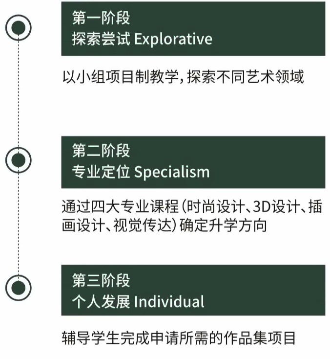 学校在与英美顶 级艺术院校专家团队历经近一年的探索讨论之后,推出了一套高中艺术设计教育的新模式——“艺领课程”,旨在帮助孩子选择一条合适的赛道,冲刺海外名 校。