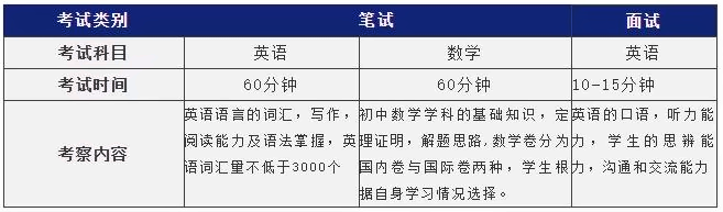 上海阿德科特学校入学考试分为 笔试(英语,数学)、面试(英语)两部分。