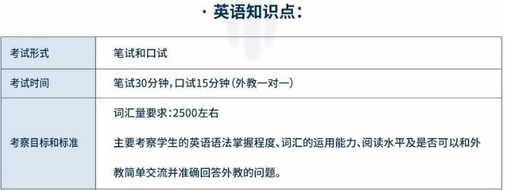 以上是 国际教育 小编为大家收集的上海阿德科特学校春季入学考试大纲的相关内容,希望能帮助到各位家长。如果您有择校困惑或者有让孩子留学的打算,填写下方Q&A, 教育 有 国际学校 择校专家答疑,并有系列讲座,指导家长们为孩子规划好升入 国际学校 的每一步。