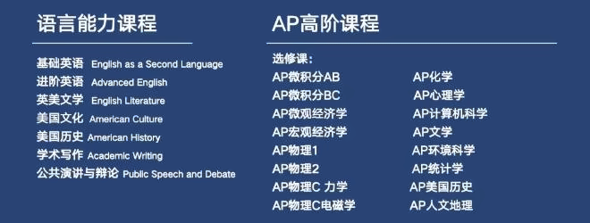 AP课程 全称为Advanced Placement,亦即美国大学先修课程,是由美国大学理事会(The College Board)在高中阶段开设的具有大学水平的课程,是进入美国名校的有力保障。