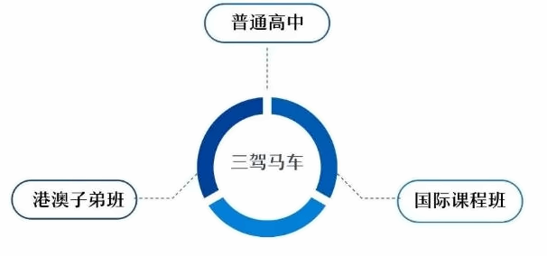 在所有中外合作办学项目中, 我校是广州市一所同时开设三个国际课程体系的市属 国际学校 , 包括AP美式课程、A-Level英式课程以及DSE香港中学文凭课程。在提供纯正美高/英高课程的同时,将国际教育与中国传统文化相结合,学生可根据个人兴趣爱好和未来发展意向,选择符合自身需求的相关课程,以满足个性化发展需求。
