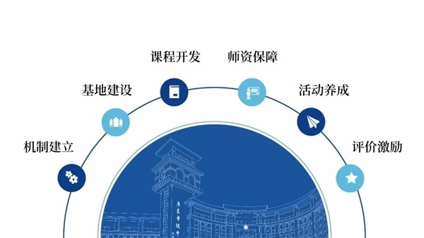 为适应社会发展对人才的需求,让学生将来在社会竞争中拥有必备的创新能力和品格,2017年5月,广东华侨中学确定创新人才培养思路。以高起点、宽视野、育素养的理念为先导,依托校内外高水平导师队伍和广东华侨中学“创新科学院”等培养基地,构建起“五位一体”的创新人才培养体系。