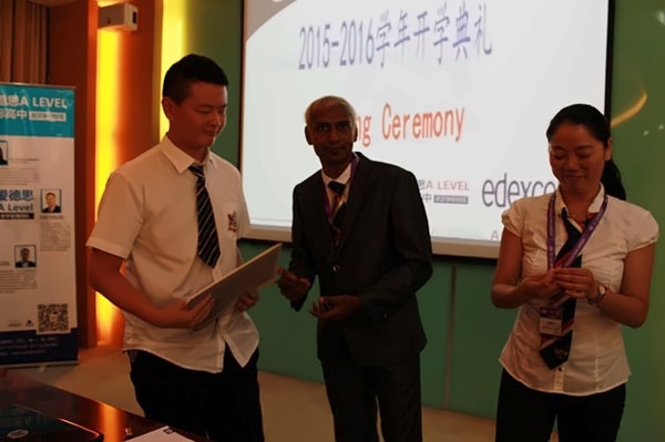 随着招生办羊老师流利的中英文开场,开学典礼正式拉开帷幕。中心主任陈会芹老师向亲爱的孩子们和百忙之中抽出时间前来参加开学典礼的各位家长朋友们表示感谢。并和大家分享了爱德思A LEVEL国际高中全新的教育理念和追求卓越的学术精神。孩子们在这里努力学习,为将来进入世界做着精心的准备,却并不早地背井离乡远离父母的怀抱,毕竟十五六岁的花样年龄,成长道路中依然少不了父母的指引和关怀。