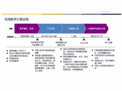 一套比较成熟的、可靠的在线教学方案的实施周期以及主要节点,是需要大约2个月去准备和确定的。由于此次疫情的关系,这个时间需要缩短到1~2周之间。ICT部门快速部署,多条线安排协调。