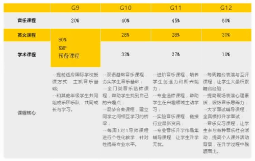 凯文国际音乐班注重音乐与学术的均衡规划,帮助学生合理安排音乐与学术的时间。在每周40个课时内,凯文国际音乐班根据G9-G12年级的不同学习侧重点,均衡规划每年的音乐与学术课程比例,帮助学生循序渐进进入艺术学习状态。此外,课外课和晚自习的时间也是学生们相互交流、组织活动与参与演出的好机会。