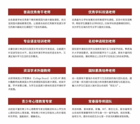 国际课程教师为教学经验丰富的海归队伍;小语种高考方向教师为有经验的高考学科专家团队;