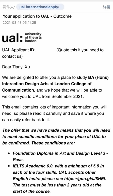 offer它源源不断的来啦!这次的offer是伦敦艺术大学交互设计专业的,来自武汉的许天怡同学,无需面试直接收到了offer!那么无需面试的作品集是什么样的?作品集的艰辛之路又是怎样的?想知道就快看下去吧!