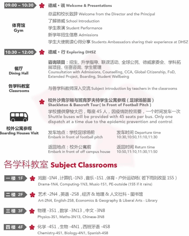 2021牛年新春将至,我们诚挚地邀请您参加3月6日(周六)德威春季开放日!届时,您将有机会亲身体验德威英伦风的校园以及朝气蓬勃的学生大使,聆听学校领导介绍学校特色以及招办主任详述招生注意事项,并且您和孩子将能试听各学科课程,与学科老师深入交流,近距离体验德威的教育理念与校园文化。另外,还有限量版德威熊和其他精美的礼品等着你们哦,名额有限,欲报从速!