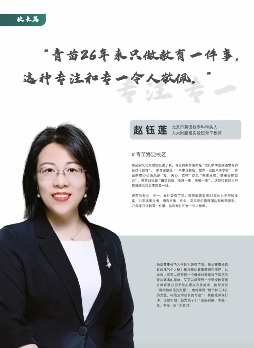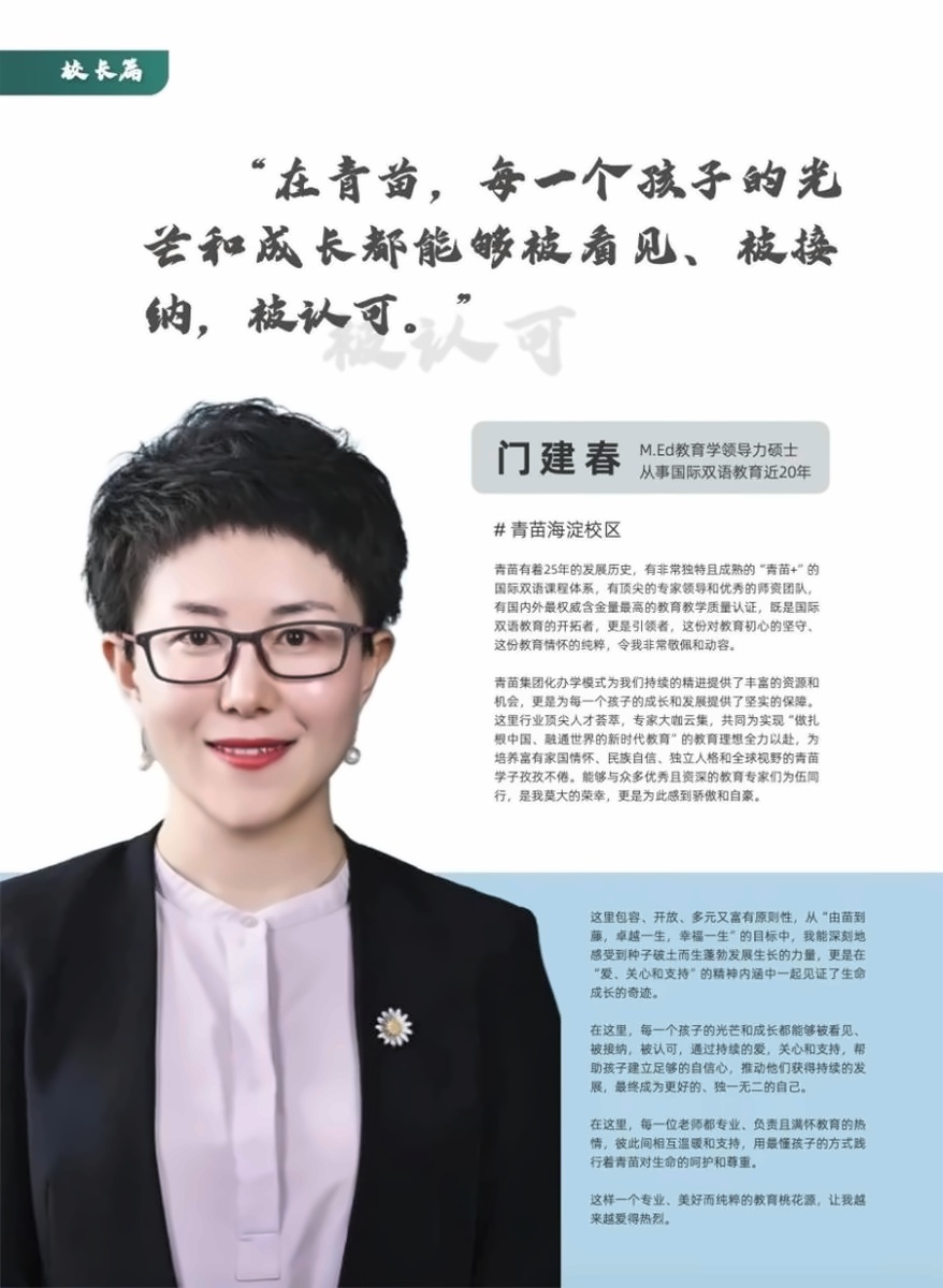 敬请关注本期专访—— 青苗海淀校区 之校长说。