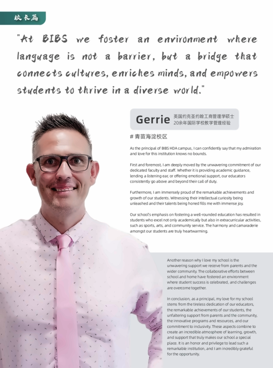作为一名 校长,我对青苗的钦佩和爱是无限的。教育**者的不懈奉献、学生的非凡成就、家长和社区的不懈支持……这些方面结合在一起,创造了一种令人难以置信的学习、成长和支持的氛围,真正使我们的学校成为一个特殊的地方。能够领导这样一个卓越的团队是我的荣幸。