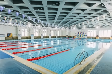 青苗顺义校区游泳馆水温常年保持在27—28摄氏度之间,4台水循环处理泵24小时不间断循环过滤,拥有先进的电脑控温和电子水质监测及处理,符合国际标准。25M×20M泳池,水深1.5--1.8M,拥有6条标准训练泳道、出发台和戏水区,是一个集训练和休闲锻炼的综合性游泳馆。全方位配备新风系统,便于全年在任何天气下为青苗顺义校区400多名学生的体育课和ASA课程训练服务。