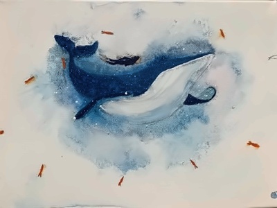 The artist on the paintings is actually myself. I was wondering about human beings affect the Corona virus spread. The human beings change to global warming, the ice melt in arctic, polo bears were dying, and the viruses were spreading. I am considering about less flow of people so there is less pollutions and chance to get sick. Growing trees for saving lives