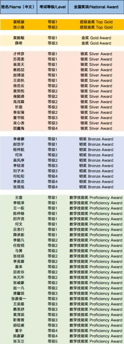 Congratulations to the 2020 Math Kangaroo award winners from BIBS UES, Shunyi, Changying and Kunming, Chengdu campuses!