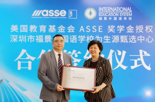 6月13日上午, 深圳福景外国语学校 与全球大型非盈利教育基金会ASSE隆重举行“美国高校奖学金项目”合作签约暨授牌仪式。自此, 深圳福景外国语学校正式成为美国高校奖学金项目的生源甄选中心。
