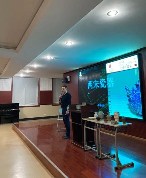 从宋代五大名窑——汝窑、官窑、哥窑、定窑、钧窑,到宋代南方四大窑系——龙泉窑系,建阳窑系,吉州窑系,景德镇窑系,再到北方四大窑系——磁州窑系,耀州窑系,钧窑系,定窑系,蔡伟老师手持“千年的历史”搭配着趣味的讲解迎来了学生的阵阵掌声与惊叹!